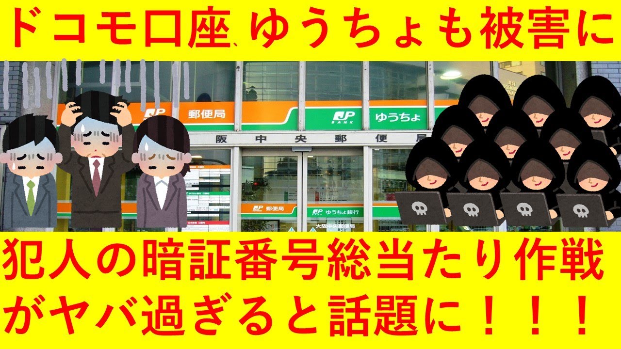 まさかこんな方法を取っているとは思わなかった。逆転の発想。またハンコ時代に戻るのかなぁ・・・参考サイトツイッターヒロシのツイッター(フォローしてね)ヒロシのプライベートチャンネル(サブ垢)お仕事の依頼はこちら studio.hiroshi2020@gmail.com NewsVideoイオンドコモメガバンクゆうちょ銀行問い合わせ悲報ドコモ口座ついにゆうちょも被害にさらに犯行の手法も判明その方法暗証番号総当たり作戦がヤバ過ぎるwwwwww提携提携銀行方法銀行