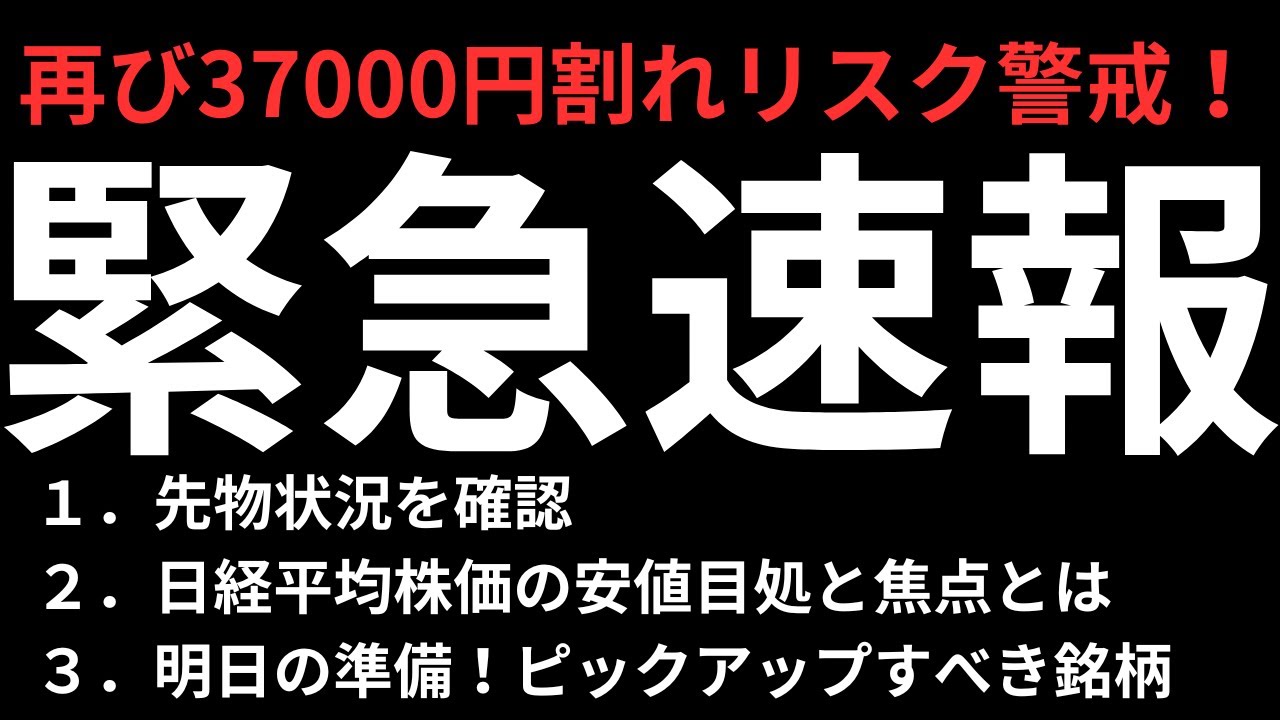 【緊急速報】日経先物急落!明日の準備とピックアップすべき銘柄|現状況をチェックして朝の寄り付き戦略について話します