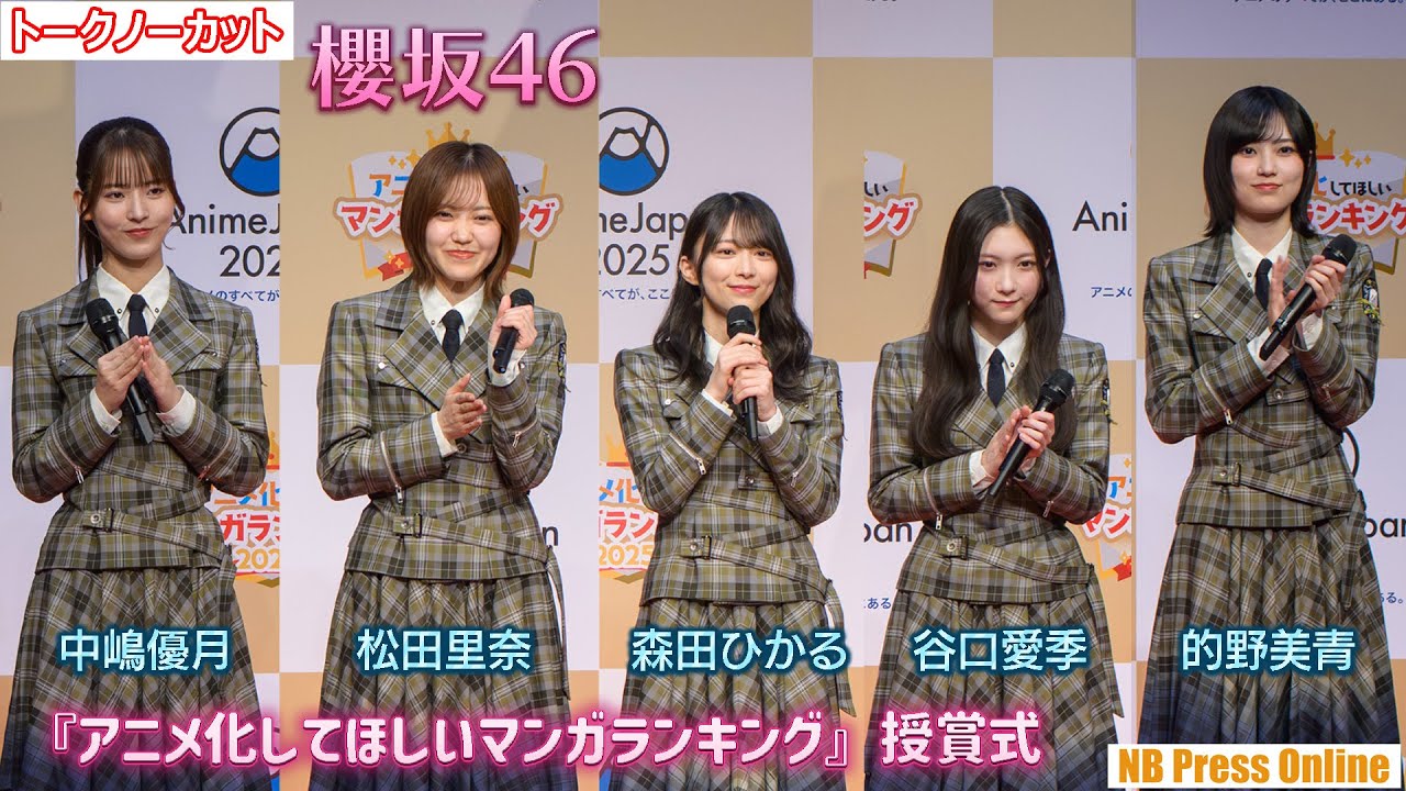 2025年3月13日、渋谷ヒカリエ ホールBにて、AnimeJapan 2025『アニメ化してほしいマンガランキング』授賞式が行われ、AJ2025 アンバサダーである櫻坂46の松田里奈、森田ひかる、谷口愛季、中嶋優月、的野美青が登壇。受賞者表彰のプレゼンターを務めた他、AJ2025への意気込みを語った。