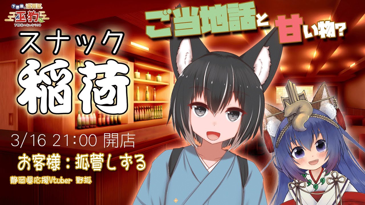 【スナック稲荷】狐萱しずる殿と深夜の御当地スイーツ話!【静岡県応援Vtuver 狐萱しずる & 下野国のおいなりさま巫狗】