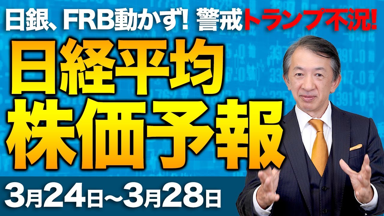 【株価予想】最新の日経平均×来週の株価見通し/続落!トランプ不況の足音か!米・経済顧問、景気後退否定せず!FRB利下げ見送り悲観論?日銀、FRB動かず!関税!円高!日経は?/【3/24〜3/28】