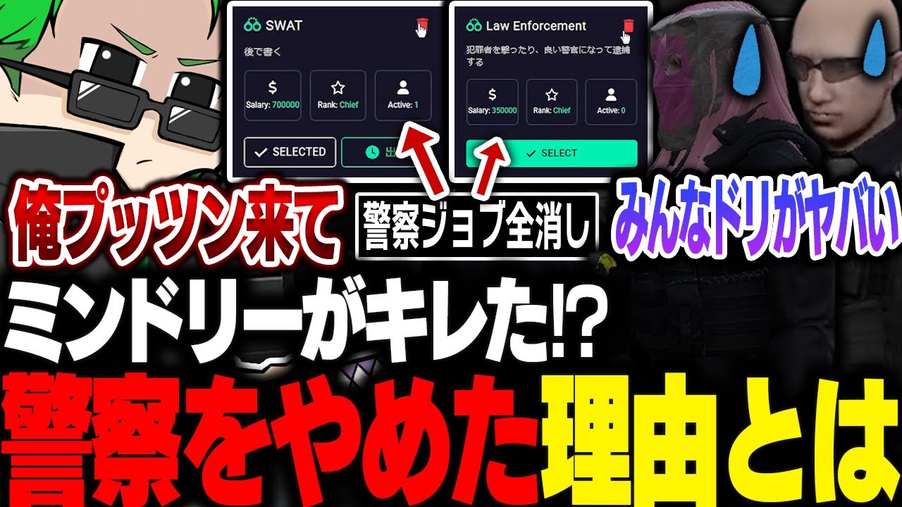 【#ストグラ】ミンドリーがプッツンと来て勢いで警察ジョブを削除?警察を辞めた理由は語る【Middleeetv】