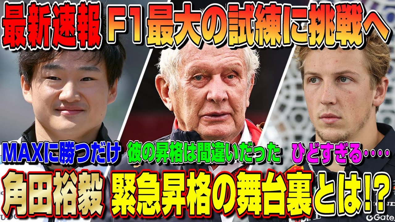 角田選手のレッドブル緊急昇格決定でレッドブル重鎮がまさかの発言?ホーナーが急に角田選手をベタ褒め?メキース代表の言葉に涙…ローソン&ハジャーの勝負の行方は?今年の鈴鹿サーキットはとんでもないことになる予感…最新情報を詳しく話します!チャンネル登録&通知ONをよろしくお願いします!