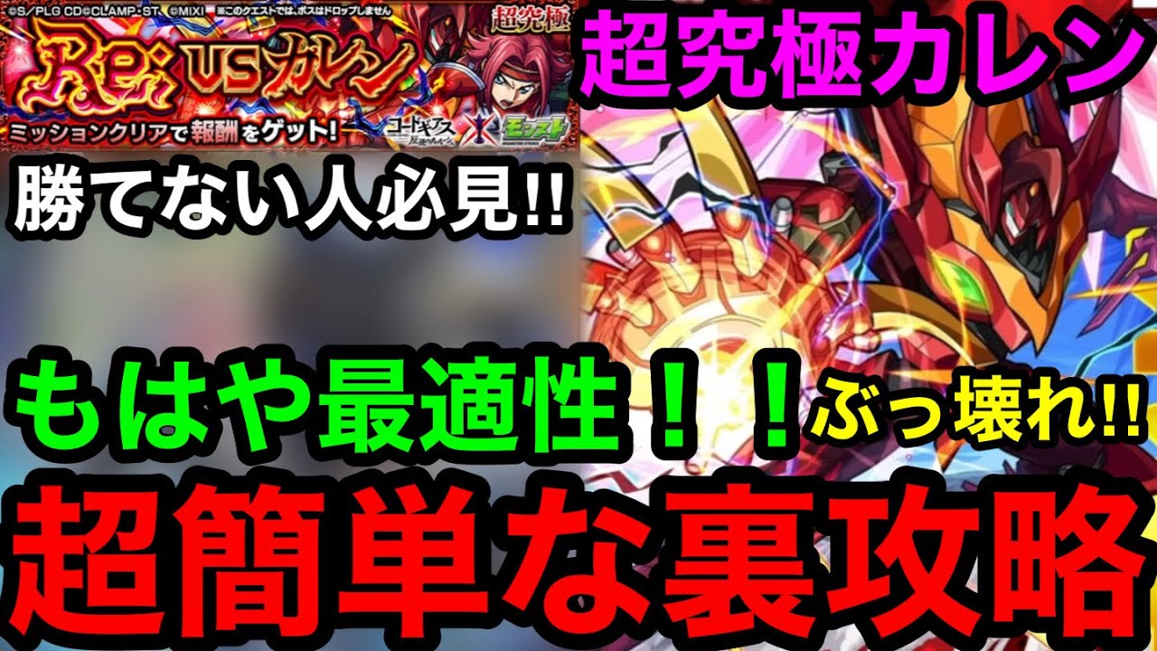 【モンスト】もはや最適性‼︎『超究極カレン』超簡単な裏攻略を発見!※勝てない人必見!!【コードギアスコラボ】