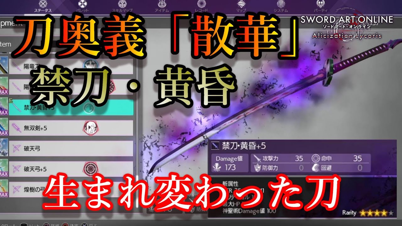 □本日はソードアート・オンライン「アリシゼーションリコリス」SWORD ART ONLINE Alicization Lycoris『SAOAL』の、生まれ変わった『刀奥義』【散華】について紹介します。