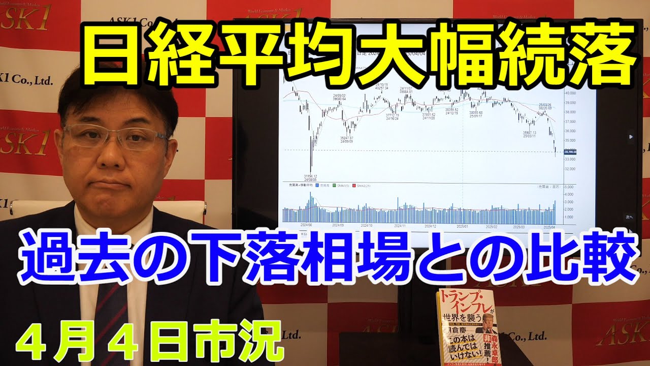 2025年4月4日【日経平均大幅続落 過去の下落相場との比較】(市況放送【毎日配信】)