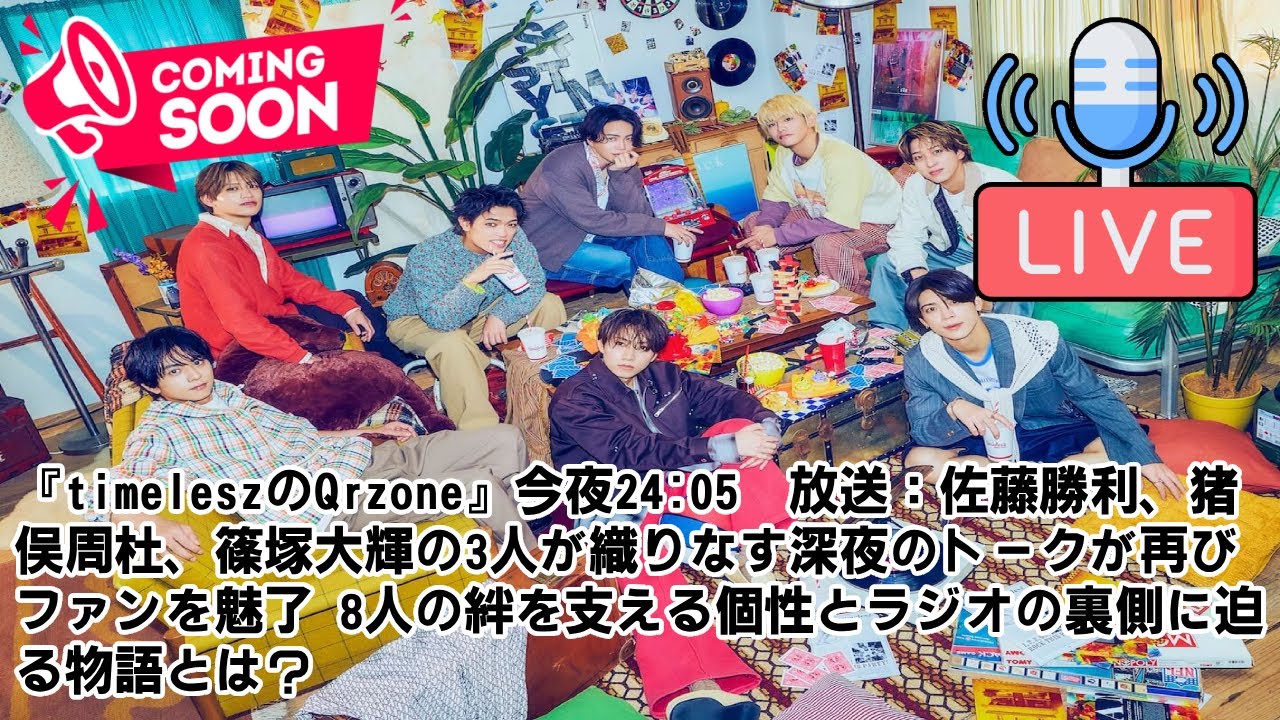 『timeleszのQrzone』今夜24:05〜放送:佐藤勝利、猪俣周杜、篠塚大輝の3人が織りなす深夜のトークが再びファンを魅了—8人の絆を支える個性とラジオの裏側に迫る物語とは?