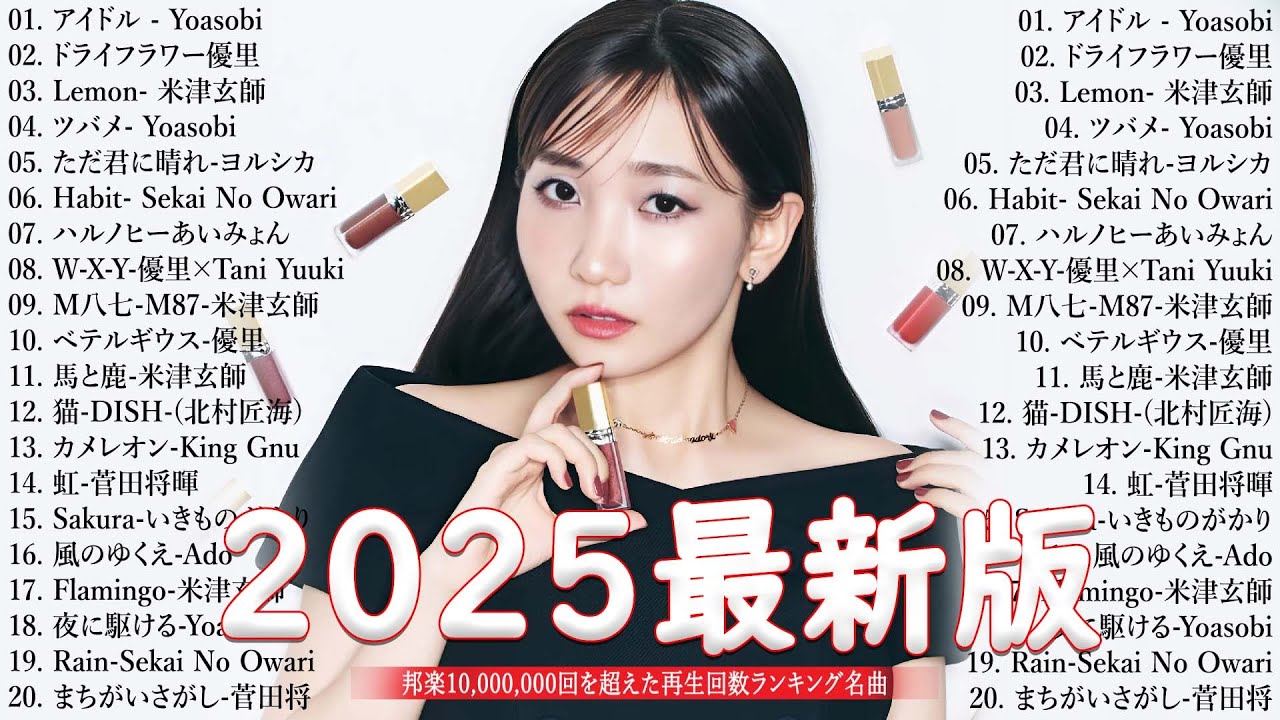 有名曲J POPメドレー 邦楽 ランキング 2025 🎶🎶日本最高の歌メドレー 優里、YOASOBI、LiSA、 あいみょん、米津玄師 、宇多田ヒカル、ヨルシカ