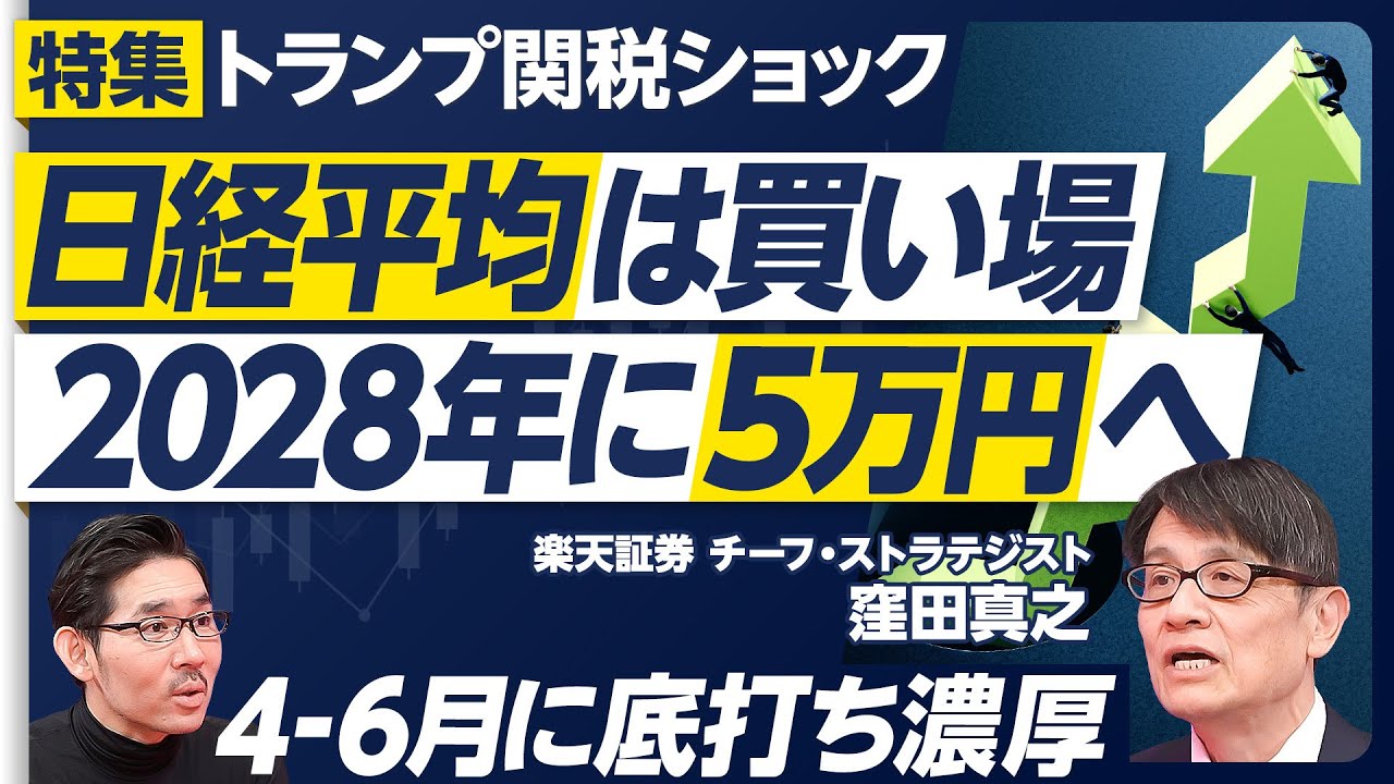 【日経平均は買い場。2028年に5万円へ】日経平均は買い場/メインシナリオ(確率70%)は4-6月に底打ち/トランプ関税後のチャート分析/リスクシナリオは世界不況・長期低迷/日経平均5万円のロジック