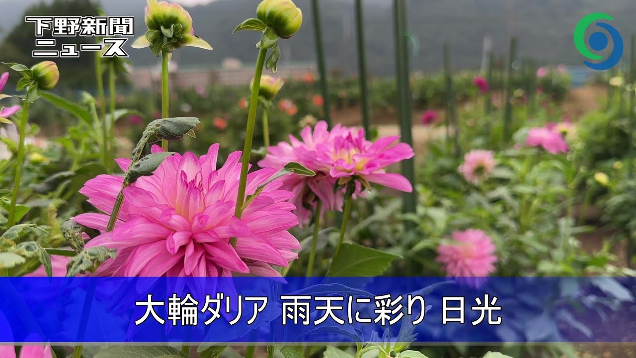 ↓雨空の下、鮮やかな大輪 日光花いちもんめでダリア見頃↓