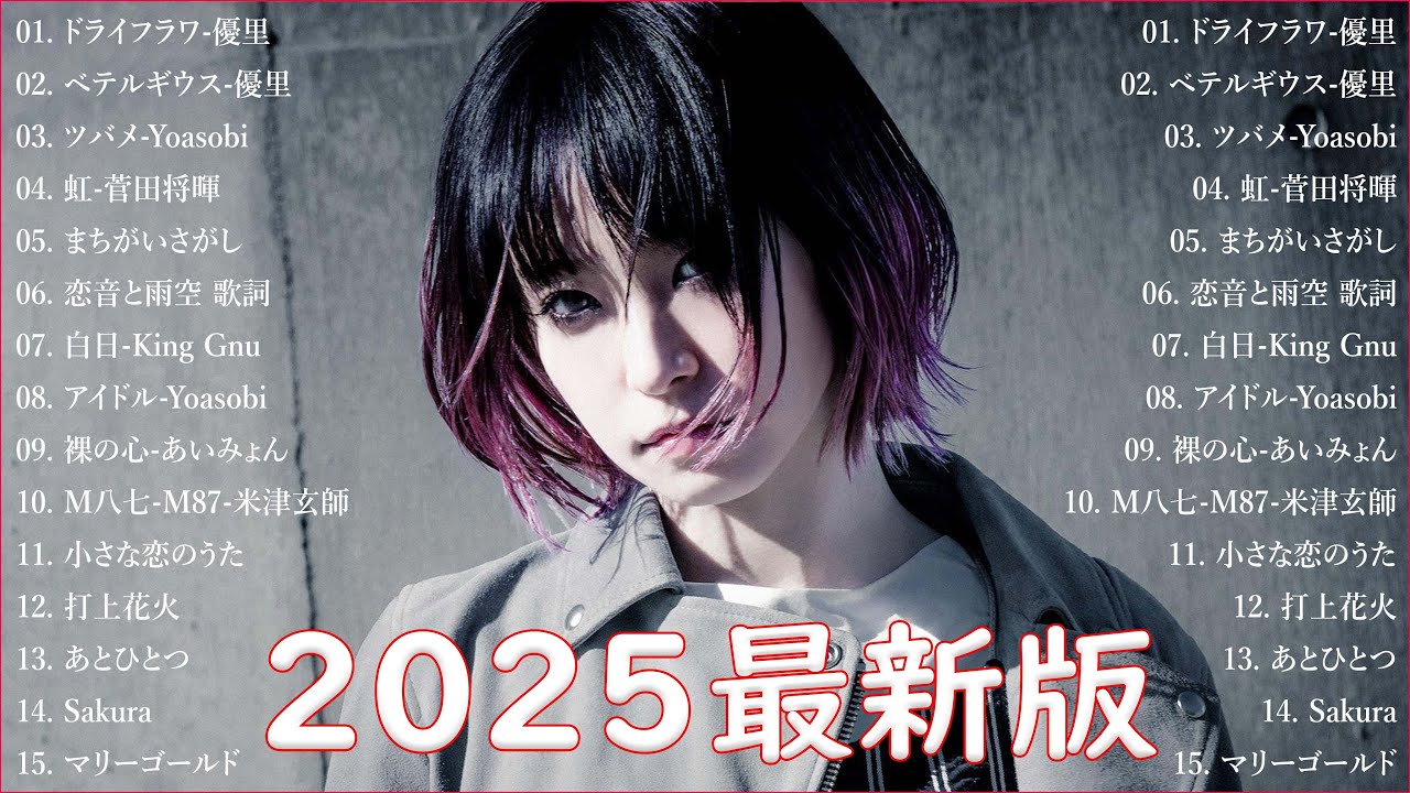 【広告なし】有名曲J POPメドレー 邦楽 ランキング 2025 🎶🎶日本最高の歌メドレー✨ 優里、YOASOBI、LiSA、 あいみょん、米津玄師 、宇多田ヒカル、ヨルシカ