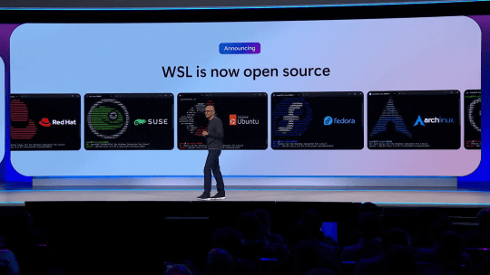 もともと「Bash on Windows」として登場した当時、Issueの第1号は『Bash on Windowsがオープンソースになることに期待』というものだった。当初は問題があったが、現在のWSL2はWindowsから分離可能になったため、このIssueがクローズ(完了)された、とNadella氏は語った。