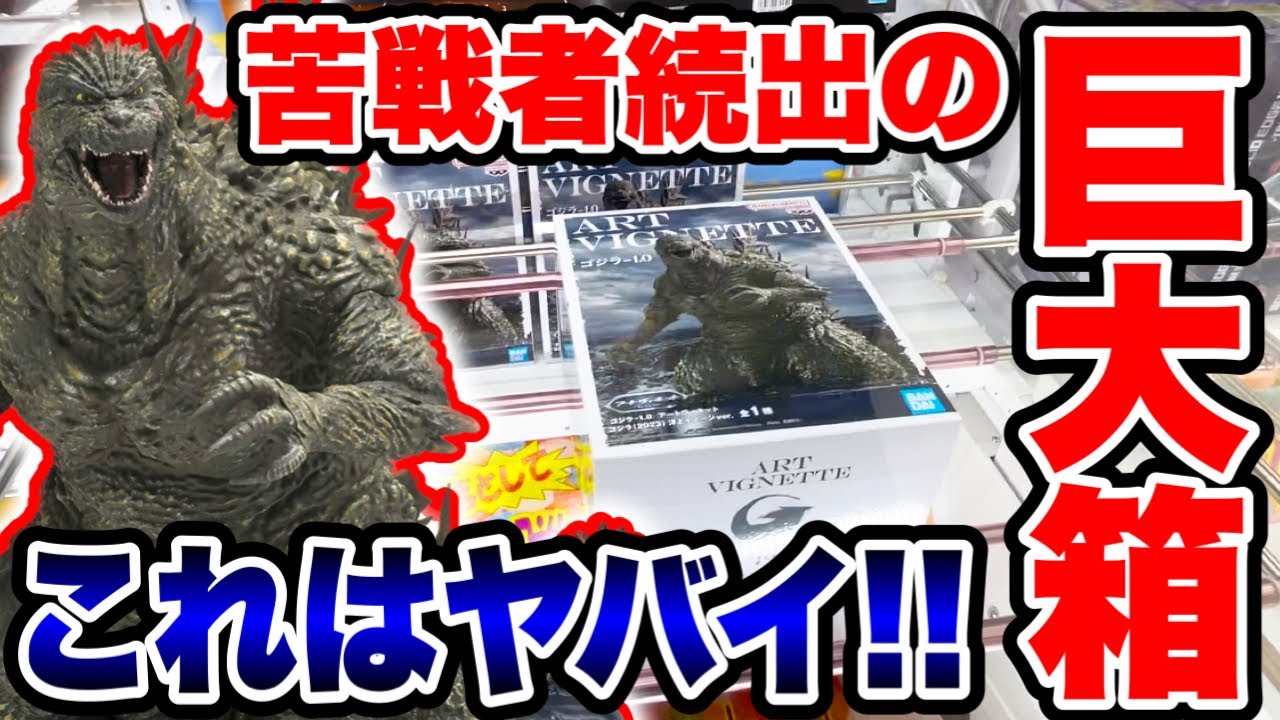 はい。え、今回CGS熊ヶ谷店さんやって きました。今回の動画はこちらがメイン です。はい。アートビネット、え、ゴジラ のマイナス1のフィギュアです。箱 めちゃくちゃでかいですよ。はい。え、4 本に滑り止めが付いた、え、バー設定での 攻略をしていきたいと思いますので、え、 是非最後までご視聴いただければと思い ます。それでは行ってみましょう。 [音楽] はい、それではゴジラ狙っていきたいと 思います。行ってみましょう。左奥からね 、上げていきます 。重心がちょっといまい分からないんです けど、とりあえず中心よりちょっと奥に 入れてみます。下が重いんじゃないかなと 思いながらやってみます 。PCか。 カラーのえっとこれはアウトだね。右奥上げて箱が立ち上がればですね。爪入んねえか。かかれかれ。 [音楽] [音楽] はいはいはい。オッケーオッケー。 これで左手前からオパッタン狙ってみます。あ、裏が重そうなんでちょんでここにパターンしてってください。入る。オッケ。オッケー。 右奥によし、乗った。 よし、乗った。通らねえな、しかし。 修正ができないんでどう見ても取んないよね。とりあえず返してみるか、一応。右たしゲット。 [音楽] [音楽] はい、ゲットです。はい。え、それでは2 体目狙ってみたいと思います。行ってみ ましょう。えっと、かなりね、重心が偏っ てる作品でした 。こんなにってぐらい。とりあえず、えっ と、左強めの真ん中よりちょい上げてみ ます 。左にね、すごい寄ってて動きがこれ やばいなって感じがしますね 。はい。えっと。 [音楽] 左手前隙間ができました。かなりね、左にグインっていっちゃうような重心してます。裏が重くてかなり難しいすね。これは箱も大きいしね。その分今日はさ、 4 本滑り止め付きバー設定のお店でやってるけど、これ 4 本滑り止め付きじゃない。滑り止めがあるでやったら結構大変なことになりそうな気がする。 中心が寄りすぎちゃって、こうずり上げた 時にガロンンっていっちゃうようなね、 そんな箱ですね。奥から回していきます。 ちょん でこの辺かな [音楽] ?右アームください 。下が重いね。浮いてきたね、今。 ちょっと優しめに立はめてきましょうか。 綺麗いに盾にはまってくれたんで、これは脅威だわ。左奥上げていきます。多分ね、慎重に綺麗にはめてくのが成功法なのかなと。ま、何の景品もそうなんですけど。 [音楽] しいます。 こっち側はね、通るところまで上がったんで、ここをうまく上げてかないといけないかなっていう感じなんですけど。バー上ら辺ちょっと超えた。これで修正して。 [音楽] 落ちたよ。今、今左落ちたぜ。 少し浮いてきたね。もう1 回右奥ね、入れていきます。慎重に行きましょう。 [音楽] バー上ら辺。 [音楽] これで引き上げろ。 [音楽] いや、地獄でしょ、今のは。 なんでそうなった?落ちる場面でしょう。いや、これは疲れる。この箱はマジで疲れる。何これ?今さ、事故らないように予せ甘めで攻めたんだよ。最初かも。 なんだこれ? まったな。あのミり残しの場面であの動きはなしだよね。抜けろ。 [音楽] よし、浮いた。浮いた。 これで執茶だな。1個目はね、BC でラッキーだったんですけど、すごい難しい。ここの三角のポイントら辺に入れてかないと厳しいかな。抜けろよ。オッケー、オッケー。入れ、入れ。引き上げろ。 [音楽] そのまま返せ。ま、 ええ、 まジか。はい、じゃ、続けてやってみたいと思います。アームが入ればですね。いや、ショックだね、今のはね。さすがにもう決めるかなっていう場面であれはマジで辛い。 ちょ、もう1回はめてこい。 はまるんだけどね。この後が全然ダめだね。左横をね、上げてみます。なんか右で上げようとすると事故るね、さっきから。 いや、場所がもう戦えないかと言ってなんかスライド方向とかに持ってってもどっちみち事故る場面なんすよね。もう 1回。 ああ、真ん中だな。もう右がね、このバーより奥に行っちゃってるから [音楽] 引き上げないですよね。どうしよっかな。ちょっと右上げてみてなんか立ち上がるかやってみようかな。 ギリギリ入れてみたら立ち上がるかもしれない。さっきからね、立とうとしてるんすよ。箱はくるンって [音楽] こうやってほらほら立った。これでうまく触れないとだね。奥にぶん投げてみます。 1かバチか。 攻めたよ。 [音楽] うわあ、だめか。無じな。もう1 回ぶん投げしてみます。いや、ちょっと気持ち的に参っちゃったな、これ。 いや、も入んないの?入る、入った、乗った。これで返してこれればですね。いやあ、なんだろうね、この子ね。まっすぐ奥に入れて返していきます。乗るなよ。通れ。 [音楽] [音楽] [音楽] [音楽] よしよし。いやあ、なんとか取れた。よかった。はい、ゲットです。超苦労した。はい。 えっと、初日のね、え、煉獄さんの動画で ちょっと手数かかっちゃったので、こっち の別ブースでね、ちょっとリベンジでき たらいいなと思って狙っ