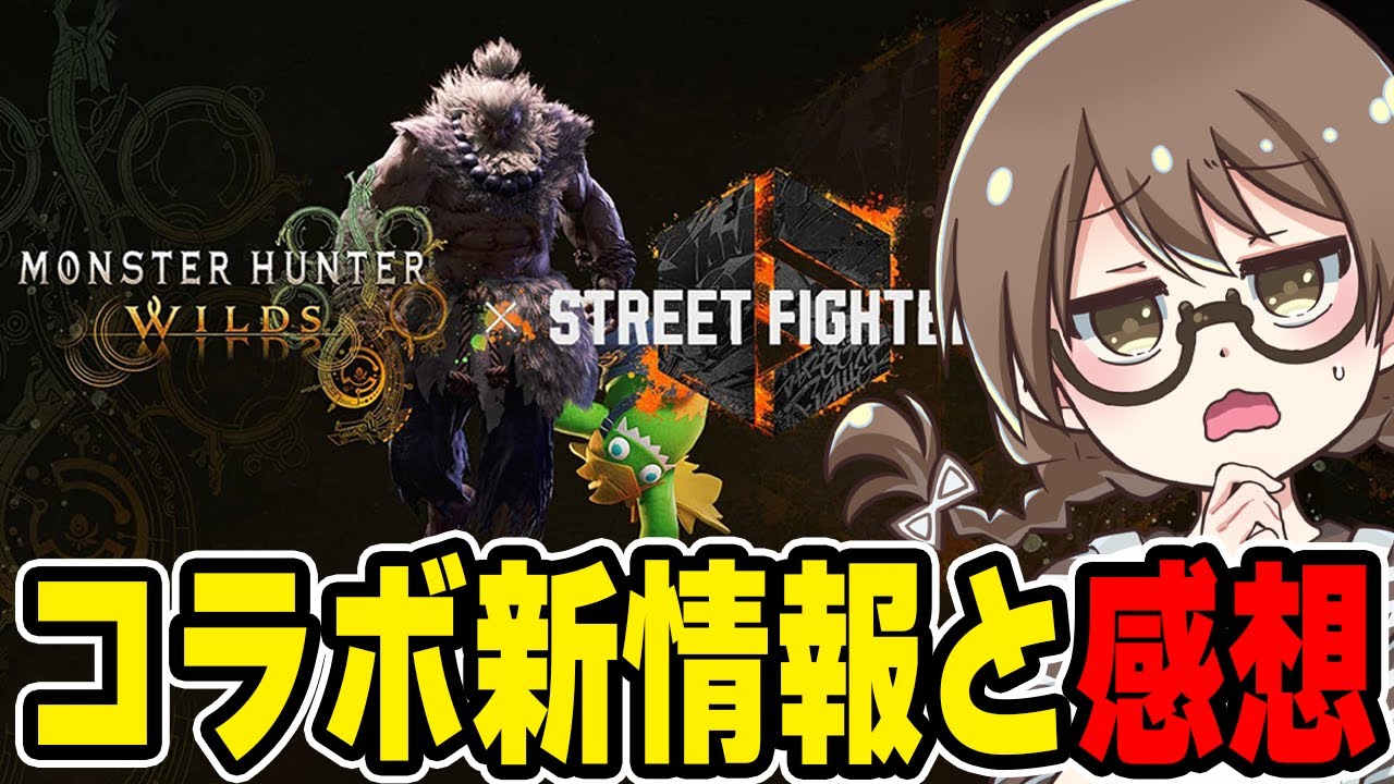 どうですか皆さん?ストリートファイターコラボ想像してた通りを 10 点だとするとなんてなんと本日カプコンラボのストリートオブファイター 6 の詳細がようやく来ましたのでそれの詳細皆さんと一緒に確認していきたいと思います。私ゲーム者田と申します。よろしくお願いします。 まあ、早速なんですが、モンスターハンターワイルズのストリートファイター 6 スペシャルコラボ映像が来てます。まずは一緒に PV見ていきましょう。 我の剣を受け殺意をその身に宿したか。人よ。 狩人よ。 いざ野に入れて試合をめ 豪に双剣しってるんですよね。これね、これ、これあれだよね。豪期のモーションだよね、これ。 昇竜拳で双剣を持つ合計 。思ってたより合機だよね 。あ、ブランガちゃん可愛い。 ブランガ人形かもちゃんと釣れる と魚食べてんの面白いな。 え、何これ?見事にやけ。 え、今の何?ちょっとちょ、ちょ気になる。後で見よう。後で見よう。 1回流しで見て。後で見。昇龍沈め。 これさ、ウ、 これぞ。 で、これがかっこいいよ。これよ。 ダーん。 これインパクトだよね。インパクト。なんかストリートファイター 6 のカウンター技みたいなやつっぽいんだよな。 で、これがアルマさんの重ねぎ2種類。 チュンリーとキャミーで波動拳に竜巻先昇龍権がこれが有料ダウンロードコンテンツかな。で、もう 1 個注目があるんだけどこれ歴戦個体星8 の追加その他追加機能各手って書いてます。怖かったよ。 調整内容のところにあのハンバーの アップデートは5月末やタイトル アップデート第2弾の時にって書いてあっ たから5月末じゃなくてタイトル アップデート第2弾の時に来るんじゃない か説ちょっとあの恐ろしいねみたいな話を ちょっと昨日ぐらいにしてたんですけど矢 が怖かったんですけどまおそらくちゃんと 来ると思います 。で、ちょっと気になったのがいくつか あるんですけど、明らかに豪期の モーション15目かなと思ったんですけど 、15目ではなさそうです。ま、私 ストリートファイターに関してはにわかで ございますので、皆さんのね、お話聞き ながら色々見ていこうかなと思います。 公式サイトに情報が出てるので、これ一緒 に見ていきましょう。ストリート ファイターモンスターンハンターワイルズ のコラボページです。ここに色々詳細が 載ってました。再戦格闘ゲームストリート ファイター6とのスペシャルコラボが決定 。己が拳を極めため殺意の波動を身に宿し 戦い続ける豪機がモンスターハンター ワールズに登場。コラボならではの数々の 要素をお楽しみください。で、日付が5月 28日水曜日なんで、あと6日かな。1 週間弱でございますのでもう少しでござい ます。はモンスターハンターライズでも コラボを行ったキャラクターなので、これ 人気なのかな?うん。あ、強キャなんだ。 シリーズの代表するキャラの1人。人気。 超人気。人気キャラみたいです。で、配信 内容を見ていきましょう。コラボ限定の 特別な報酬が追加。豪期との物語が体験 できるサイドミッションは必見。豪期が 登場するサイドミッション。強さのいだき その先へ。さらに闘技大会クエストの覚悟 の証明教者の証は真の強者たかをクリア することでコラボ報酬が入手可能 。闘技大会クエスト大当たりです 。闘技でした。なのでサイドミッションで 1つと、え、闘技大会クエストで2つなん でクエストは3つ配信されるみたいですね 。これはなかなか豪華じゃない。で、 サイドミッションの強さのいだきその先へ はハンターランクが21以上になると ゆ明谷のベースキャンプに出現するNPC 8の対の変算者クイーンから受中可能です みたいなのでまだハンターランク21に なってなくて配信すぐにストリート ファイター6のコラボを遊びたいっていう ハンターさんは今のうちにハンターランク 上げといてください。ま、ストーリー攻略 中でハンターランク21になるはずなんで 、そこまで進めていただいたら大丈夫かと 思います。豪期シリーズのハンターのワン セット防具と重ね。ワンセットボーグって いうのを解説させていただきます。ワン セット防具は頭から足までこの装備以外 つけれません。他の装備と組み合わせる ことができません。だから頭だけ合きで体 がセクシーなちゃんねとかできません。 もうワンセットになってます。 キャラクターをね、愛してる方結構 いらっしゃるんで、それをね、自分がやっ てるゲーム以外のゲーマーの方になんか こう遊ばれたらちょっとやっぱり嫌な 気持ちになるプレイヤーさんも いらっしゃるじゃないですかね。だから、 ま、こういうワンセット防具みたいな形で 実装してるんじゃないかなと思っており ます。ま、ただこれはあのモンハンだから 絶対ワンセット防グっていうわけじゃなく てデビルメイくらいとかはワンセット防具 じゃなかったですね。うん。ただ ストリートファイターに関しては、ま、 ずっとワンセット防具だったので、ま、 ワンセット防