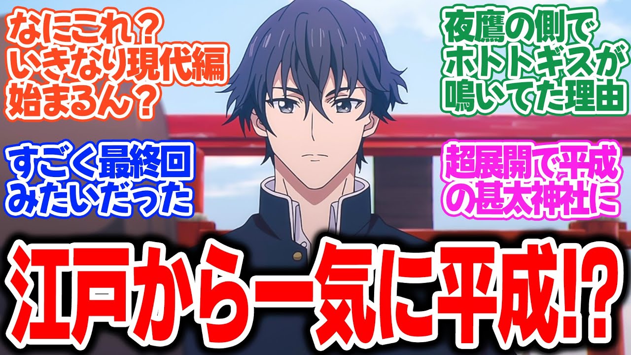 鬼人現省第9 は花酔いかざし後公編皆さんの反応集 何これ今日最終回 って感じの終わり方だったな 一気に平成になったなんかすごく最終回みたいだった すれたいに江戸変ってあったから1 クールずっと江戸と思ってたからびっくりによ すまんマジで意味がわかんなかったわ画は良いと思うんだがな このまま平成編に飛ぶわけではなくて編成ちら見せしてまた戻るスタイ かな?ビビったわ。 この現代の神社が原作家の変の終わり方だからまた江戸に戻るぞ。いや、作画は正直作を見るにこれた他者に丸投げしてんじゃないの。次回このまま平成の場面から雨たかやりそうだな。 [音楽] いくらなんでも鬼量産しすぎじゃね。戦争やったら藤見の鬼軍団で無敵だろう。 まえちゃんって同じクラスだったよね。名前ないんだが。 最後夜のそばでホトギスが泣いてた理由がよくわからなかったんだけどどういう意味だったの? [音楽] あの神差しは以前は豊たかのものでホトニスになってかつての持ち主の元に帰って行ったということでは ずっと朝になると泣き続けるのかよ仕事なのに大変だな。 そ麦屋親子まだ生きてんのかな? 親父さんは元々幸福の庭で20 年ばかり過ごした影響で外の時間より余分にとし取っているので 親父さんは普通の人でしょう。 何これ?いきなり現代編始まるん? 平成だ。来週までに何周かしときます。 [音楽] 先週してた染めろの服装の話。エ星をつけ たら新食のような格好っていうのが音名字 のように見えるけど実は違ってツクモが自 だからエ星島までつけたら本当に音名字の 格好になっちゃうのよと言いたかった。 それはそれとして漫画のキャラデザが最高 なのは認める。いきなり頂点会で平成の 人神社にまた来たな。宮川ビにつがる何か の家計なんだろうか。一旦平成に戻ったと いうことはこれで江戸編は終わりなのかな 。来週から爆末編が始まる。 [音楽] 単純に考えれば平成編までやれるわけがないから、ある程度適当に作ったのかもしれないけど、 1 話でカットされてた部分を今回の尺が余ったところに入れてくれてたりと考えて作ってくれてる感じがするからな。 元春さん関係の話をばっさりカットしたの も、今思えば7話で触れられたからだろう し、自分はちゃんと確認できてなかった けど、1のAの名簿が出てなければそっち にいるのかもしれないね。なんでニクール でしょう?みかちゃんかよ。アニメだと 視聴者が忘れるから1話での残りをここに 持ってきて来週につげる感じやろ。これ 硬い呼び方はやめろって言われたから。 次回から染めごう呼びかな。 傘の腕でマスを回しそう。 なんかよくわからん兄弟の念が紙アイテムに種に宿ってた。までは理解できたけどその兄弟の魂らしきホトギスとかに何の関係があったの? もしかしたら夜の持ち物だったのかもねって話。 おマジか。それだとなんか急に話のクオリティ下がるね。検索だともうちょっと丁寧に同性引かれてたけどアニメでは時間が足りなくてってパターンなのかな。 実はまだ話が終わってない。 そういうことか。缶ざしは豊たかの持ち物として公害は誰のやつだったの? 4 話も前に一瞬出た公害が実は重要ヒント。 ヨ太と夜に鳥の声が聞こえて缶ざしは元々夜さんのものだった。公外は夜のおさんが持ってたもんだったっけ?あれ蕎麦早の親父からもらってたよな。俺には文婦相応王だって。 豊たの母親しのとこにいた浮のモデルの女の人誰か解説来週見たら分かる。 来週だよメインのエピソードだから 続くのかキゆい来週の答え合わせ解説会を枠手化して待ってるわ。 いよいよ現代来三ちゃんは代々続く神社の巫女さんじが戻ってくる場所を守ってみやかちゃんとじ君は同じ高校に [音楽] ワンちゃん3 を手な付けて口数の多いあ津を伴い神ざしあかしを解いた人夜長い年が立って平成 21 年とある神社の名は神太神社底そこに百屋の夜の名を受け継ぐ子姫川高校 で、共にC組の9番と29 番にくっつくできれない限定。 陣夜が持っていたものと勘しがそうになって作られたものだったんですね。しかしナツちゃんその時の記憶が全部あったみたいでとても恥ずかしそうにしてたの可愛い。それと現代もあったけどとても良かった。 [音楽] 鬼人当初難しくない?完全に理解できた人いる。 夏のお兄様発言はそういうことかと相変わらず設定が来られてるなと思う。ただ次回から夜さん高校制編が始まりそうなんだけどこれ面白くなるのか?あの江戸の雰囲気すごい息気に言ってたんだけど [音楽] 戦治に煽られた夏の睨み顔作合入っててよかった。 鼻酔い缶ざ差し完結だけどここで平成兵入&あさや登場ということは明治編の例のエピソードもあるのか江戸編はまだ続くけど先のアニメかも楽しみすぎる。 [音楽] 犬神音寺とかじゃないんや。こいつは結局鬼なのか。なるほど。平成 21年。 なんだなんだどうなった?まさかここから現代を いきなり平成に飛んだな。平成まではたるかなり長い長い物語だと思ってたからミクール突入しない