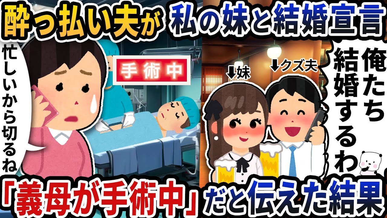 何も知らない酔っ払い夫が私の妹と結婚宣言→「義母が手術中」だと伝えた結果【2ch修羅場スレ】【2ch スカッと】