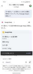 これを応用すれば、買い物や料理が一段と楽になる。「カレーをつくるのに必要な材料をKeepにリストアップして」のように指示すれば、カレーの材料をチェックリストの形でKeepに登録できる。