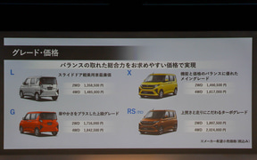 さらに、初代ムーヴが導入されたときはノーマルモデルは子育てから子離れ世代、カスタムモデルは若年世代から子育て世代と、ユーザーの棲み分けがされていたという。しかし現在はユーザーニーズが変化してきており、ノーマルモデルもカスタムモデルも購入者層が似通ってきていることから、「カスタムの役割が希薄になってきた」として、新型ムーヴはカスタムモデルを廃止したワンコンセプトでリリースされた。