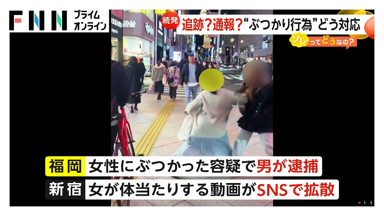 東京・新宿では、すれ違う女性に荷物を持った女が体当たりする動画などがSNSで拡散されています。