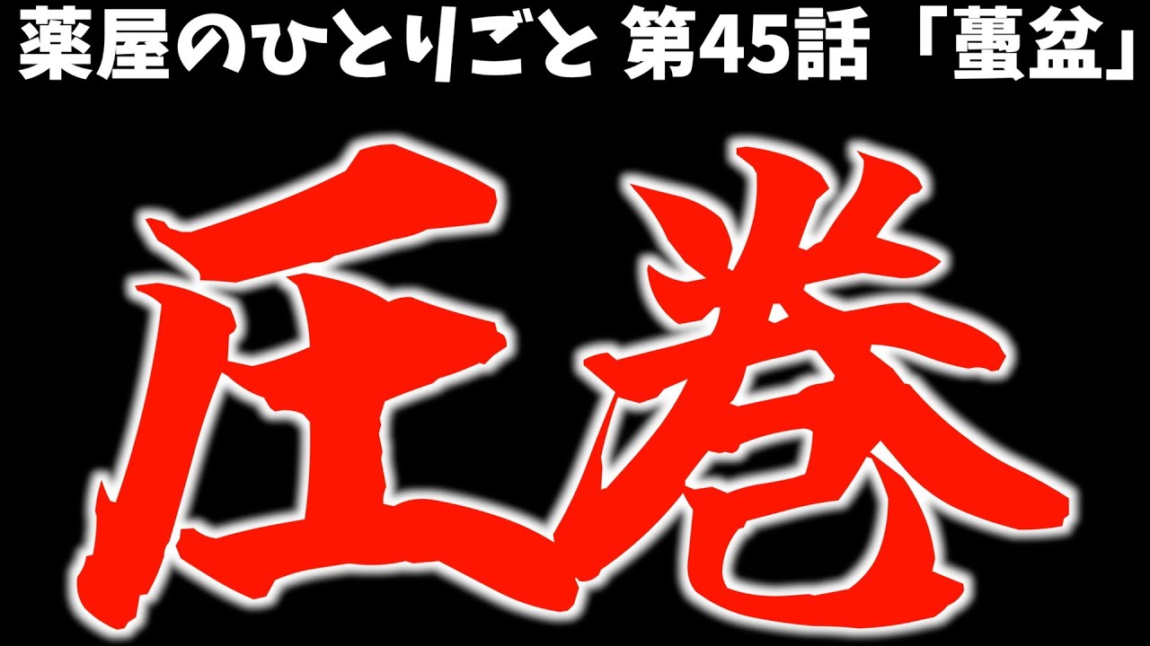 いやね薬屋の独り言第45話めちゃくちゃ 良かったですねでこの45話なんですけど ももう数秒ですよあの数秒に今までの全て 詰まってるや ん素晴らしい数秒だったんでちょっとこれ は感想りたいなということで今回動画撮っ ておりますということでエクスアの独り言 第45話についてお話ししていきたいなと 思うんですけどもえ今回の45話ですねえ 名の元でま薬としてねあの不ロの薬を作 るっていうところで頑張るまおっていう ところから始まったのかなと思いますで フローの薬なんてま正直難しいっていうか ほぼほぼ無理なんですけどもでもその まおまオって薬としてのですねプライド みたいなもありますから頑張るぞつって こう張り切ってるんすねでその頑張る ぞっていう張り切ってる声を聞いてその 心配しているえシ水がですねちょっと アンドするみたいなここの絆を感じる シーン良かったですねえそんなマウマの元 にですね逃げろうって書いた手紙と張り紙 がその扉の隙間からファーって生えてくる とま今がねやったことやったんですけども まそっからですねそのまおまおと雨がなん かやらかしたぞみたいな水冷もやってき てっていうところでただ水冷はこれ大事に したくないっていうことでちょっとまあ 今回は音が見なしてみたいな流れになって いったんですけどそこに新命がファー言う てやってきて何事だみたいな感じになるん ですねでこのまんまマウマが黙ってれば まおまらないんですよまそのまんまね風呂 の薬作れやみたいな感じで終わっていった んですけども今も危ないしえ水冷も危ない 何されるか分かりませんよねと実際に水冷 パーンってこう殴られましたからもう むかつくんすね思うからしたらもう何も 言わん方がいいんですけどもあのムかつく からあのババーって言ってあの暴言を履い ていきましてですね鮮命の激林に触れると ここも良かったですねみんなのことを救う ために自分が犠牲になってですねえ守ろう とするっていうでそれもシかってるわけ ですよていうところで体本っていう罰ツを 進めるんですねほんまはなんか水アビの系 みたいなあんな寒いところで水アビなんか したらとんでもないことなりますけども体 っていうバツがあって私初めて知りました けどねでその体本って聞いた時に水冷が めっちゃビビるんすよえ大かよマジで みたいな感じでビビるま昔ね水冷も体受け たんやとえいうところでめっちゃビビっ てるで実際体望って何かって言うとなんか ムとか蛇とかまそういうま毒持ってるん でしょうけど凶悪な生き物とね一緒に 閉じ込められるみたいなま私は正直耐え られないようなバツなわけでございますだ から水冷はま蛇を怖がっていたいみたいな ねえエピソードが過去にあったわけです けどもこれってまおまからすると何の問題 もないですよね日々やってますから毒の 研究言うてねその蛇とか色々と触ってる でしょうからまいっていうでそれ分かっ てるから水は体を進めたっていうここの やっぱ相手を思う気持ちままもまみんなの ことを思って自分がバツを受けること決め てるしそんなマウマのことをしっかりさし て守るファインプレイを指水もしていくっ ていう心にしる素晴らしい展開でしたねま そんな命の元にですねままおまおさばれた よっていうところもございますから軍が わー言ってやってきているわけでござい ますその知らせもやってきたっていう ところで慌たしい雰囲気になってくるん ですけどここで支水が動くんですね何 かって言うとその四水たちがいる地下で 火薬を作っていましたよとその火薬作って た人をもう逃すともうここは戦下になって 助かるか分からんからっていうところでま お金も上げてね逃がしますよとでその 逃がし方っていうのが火薬ありますから そこに火つけてボーンってこう爆発させ ますよとその混乱に常時で逃げてねみたい な形やったんですねでそこにまマウマもい ましたよっていうところでここで四水と ままが一緒に動くという展開になってくる んですけどもま四水は自水でまおま逃げろ うって言うわけですよそこでまおま水も 一緒に逃げようみたいな流れになってくる んですけど四水にはまだやることがあ るっていうところでどこか違うとこ行くん すねでそこでまおまついていくっていう 流れになってくんですけどここからねもう 薬屋の独り言の脚本力のすごさっていう ところをもう買いま見るわけでございます まずなんですけどまからすると鮮命って ローランのことを大切にしているように 見えるんですよでもそれはローランを操り 人形として大切にしているだけなんですね 要は復讐の道具としてローランを大切にし ているなのでそのローランが子供の心から もう決晶をわー言ってねもう白のとかも 塗ったらくってみたいな形でこう道具とし て操り人形として可愛がっていただから こそそのローランがですねその下の格好を するともう誰かわからんっていうところで あのボコボ
