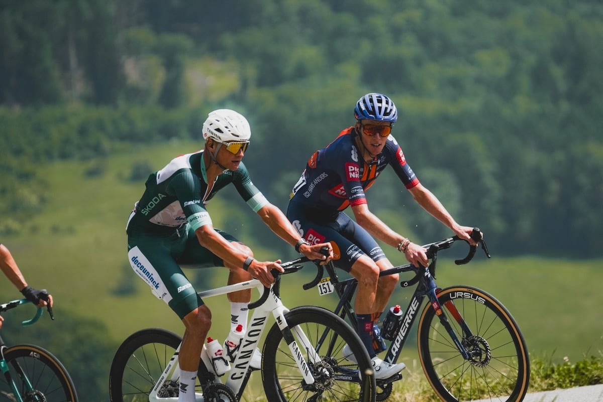 レース先頭はアレックス・ボーダン(フランス、EFエデュケーション・イージーポスト)とマイケル・レオナード(カナダ、イネオス・グレナディアーズ)の若手コンビが1分のリードで頂上を通過する。後続のエヴェネプール・グループは10名に絞られたものの、下り、そして最終山岳に続く平坦路でアシストたちが続々と合流。ラスト2つの2級山岳に向けてジョナタン・ナルバエス(エクアドル、UAEチームエミレーツXRG)が作るペースに、緩斜面にもかかわらずエヴェネプールが早くもを遅れを取った。