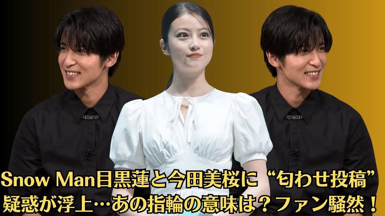 ◆Snow Man目黒蓮と今田美桜に“匂わせ投稿”疑惑が浮上…あの指輪の意味は?ファン騒然!
