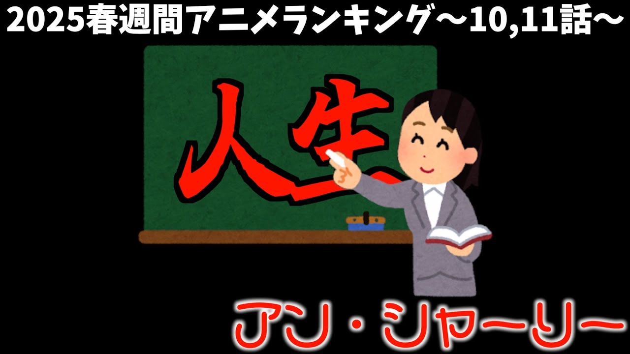 どうもさす今回個人的2025年春アニメ 週刊ランキングやっていきたいなと思い ます対象作品は6月8日曜日から6月14 日土曜日までに放送されていて私が視聴し た作品となっております個人的な感想なん で是非皆さんのご意見コメント欄でお待ち しておりますとことで評価基準です シナリオテーマ性演出キャラ感情この5 項目を中心にランキング作っておりますと いうことで早速トップ10発表してまいり ます第10位サマーポケツ10話という ことでもうつぎちゃんのことめっちゃ 大好きになりましたねここの数話でだから サマポケのねキャラクターを好きにさせる 作りがほんまに素晴らしいなと感じてる 次第でございますでこのつぎちゃんなん ですけどあの元々つぎちゃんっていうのが いてこのつぎちゃんが持ってたぬいぐるみ のまツくも神みたいな感じですかねていう ところでつぎちゃんがいましたよとでその 元のつぎちゃんっていうのが神隠しでどっ か行っちゃいましたよっていうところで その元のつぎちゃんのためにその ぬいぐるみのつぎちゃんがですねあの ずっと生きてましたよみたいな形やったん ですけどもこのぬいぐるみつぎちゃんのね 最後ハ里君とのやり取りなんかも めちゃくちゃ感動できましたのでもうつぎ ちゃんムぎゅみたいなね感じで大好きに なりましたただですねそのオリジナルつぎ ちゃんね神隠しにやってしまったつぎ ちゃんが救われてないのがですねちょっと 心残りではあるんですけどもま非常にハり 君とつ木ちゃんとの関係性も感動できまし たしまそこにですねそのしずくちゃん なんかも加えて非常に素敵な夏だったん じゃないかなというところですねただこの 素敵な夏もですねあのまたやり直しになっ てしまうとえいうところでございますけど も次のヒロイン楽しみだなと思ってる次第 ですえ続きまして第9位ロックはレディの 立並でして11話っていうことで今回なん ですけど過去にですねノーブルメイデに なったOBとリリサが接触するっていう ところやったんですねそのリリサがもう バンドやりてみたいなギター引きてって 言ってるところにそのノーブルメイデンを ね過去に取ったOBとはち合わしてしまっ てこう聞かれてしまうとでそれをこう ばらされてしまったらどういことやねって いうところでですねみたいなお話やったん ですけどその元OBがですねハープ めっちゃうまかったんすねものすごいネ色 奏でると素晴らしいなみたいなでノーブル メイディアンになるやつってこういう考え なんだっていうところでリリさんも感化さ れつつあったんですけども最後そのOBと 売買する時にですねあのいつかハープの 演奏を聞かしてくださいねってこう言っ たらそのOBからですねやめたよって言わ れるんですねもうハプやめましたよとなん でかって言うとそのお父さんからやめろっ て言われたからやめたわとはそう一族の ためにね尽くすのがもう私の役目です からっていうところで必要ないからやめ ましたよとでさらにですねそのリリさんに 対してギターもお遊びでしょとねいつか やめますよねみたいなことを言って去っ てったんすねでここでリリさんぶち切れ ましてですねまいつものね演奏してる 裏交ってうおー言うてあの引いていたわけ でございますけどもねこれってやっぱ考え 方の違いというかどこに価値を見出す かっていう話ですよねリさってま気持ちん の中ではお母さんのために頑張らなあかん と一族のためにもう頑張らなあかん自分を いつらなかんて思ってるんですけどもでも ほんまの心のシっていうのはギターやり たいわけですよでOBはそうじゃないん ですよねそのリリサにとってのギターが 一族のために尽くすようなだけであって その価値観の違いなんで別にどっちがいい とか悪いとかないんですけどでもリリサに とってはめっちゃ大切にしてるギターを 引くということを馬鹿にされたみたいなえ 形になるっていうところでじゃリリサは 結局最終的にね主選択どうすんのっていう その一族の反栄お母さんのために頑張るの か自分のやりたいことギターっていう ところにえ全力を尽くすのかこれどうすん のかなっていうリサの今後の選択が気に なる第11話や話だったかなと思った次第 でございましたあとちょっと気になったの がですねそのリリサがノーブルメイディア に成りたすぎてですねあの空回りして るっていう制度会のお茶会の最中に いろんな提案するんですけどいや今お茶会 買いの最中やからってちょっと釘刺される みたいなねこの空回りも気になるなって いうところでございましたはい続きまして 第8位小子シリーズ第21話っていう ところで今回なんですけれどもその小バト 君の引き逃げ事件と過去に小バ君が関わっ ていた引き逃げ事件の犯人が分かったって いう回だったんですねで小バ君の引き逃げ 事件の犯人としましてはずっと突き添って くれてた看護師さんで過去の引き逃げ事件 に関しましてはなんかコンビニのアルバイ ター