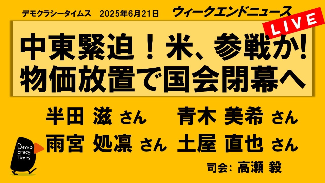 中東緊迫!米、参戦か! 物価放置で国会閉幕へ (半田 滋/青木 美希/雨宮 処凛/土屋 直也) ウィークエンドニュース 20250621