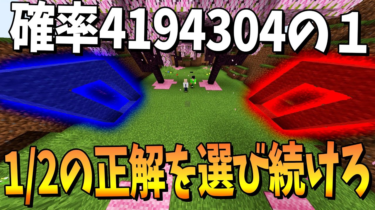 1/2の正解を選び続けろ 確率の扉に挑戦して4194304分の1を目指すアホが考えた企画が地獄過ぎた – マインクラフト【KUN】