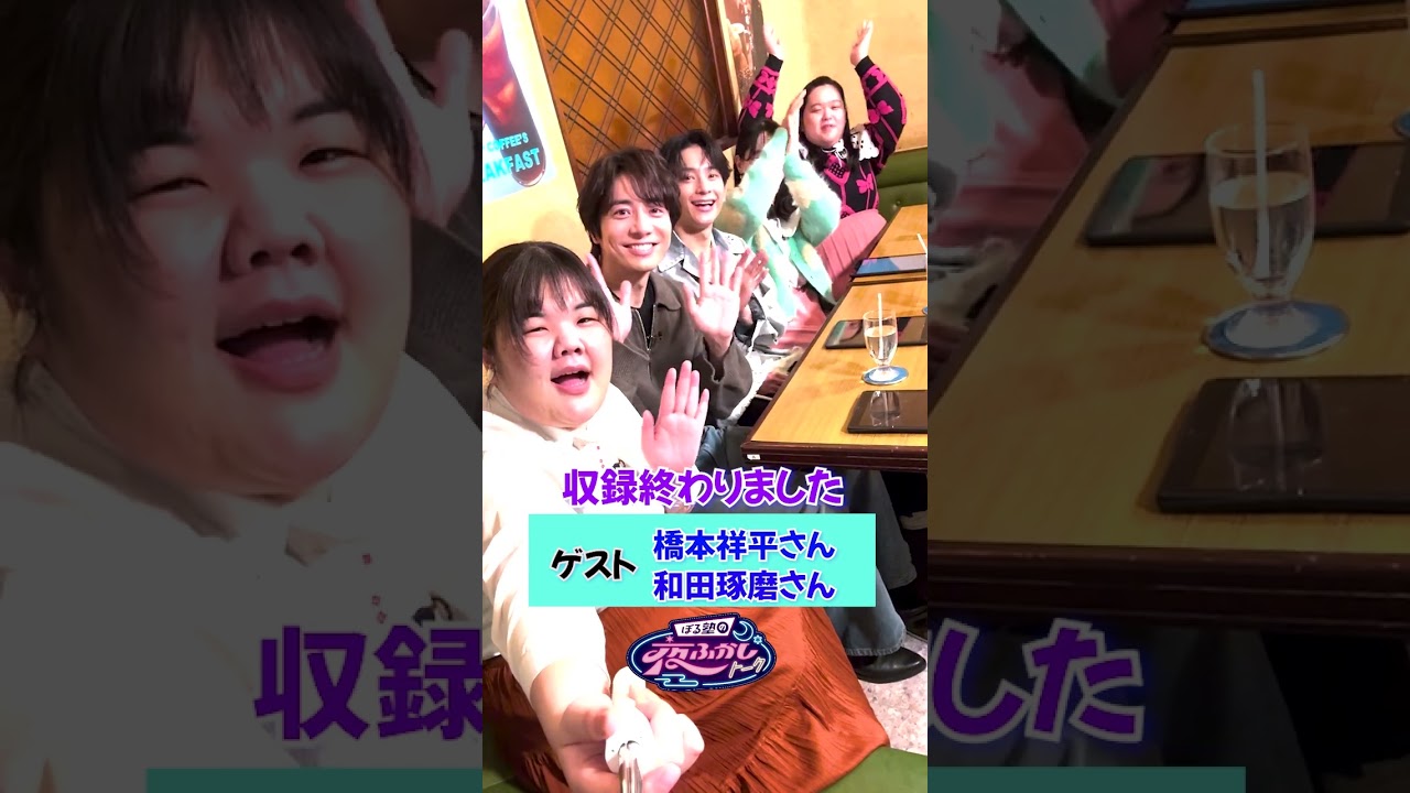 甘えたいタイプですか?それとも甘えられたいタイプでしょうか 僕はあんまりこう自分からそういうこと言えないので思ってても 橋本さん甘えそうですけど そうなんですよね共演してると大体1 番年下なことが多くて はいはいはい 基本先輩にはて言ってるイメージしかないからな 現場で下の子増えましたけど負けないですあの後輩 後輩ムームーブはもうまだまだ まだまだ 夜更か取得終わりましたイエ ゲストは橋本さんとわ田さんですありがありがとうございました 和田さんいかがでした とっても楽しくてあっという間でした ねねあっという間でしたね本当にね 橋本さんいかがでした もう心がホクホクになりましたですけどね ちょっと田ぶさんも夢のような体験できましたね キュンだった 是非本編も楽しんでください 見てね見てね [音楽]