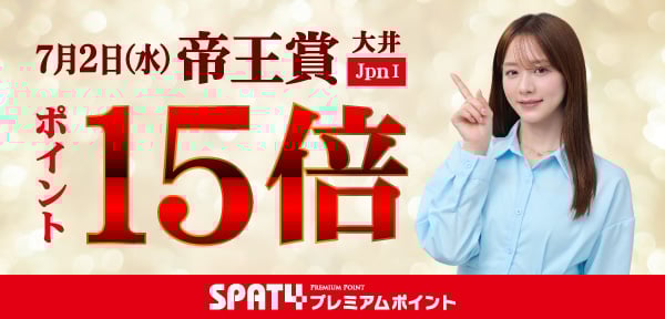 SPAT4プレミアムポイントでは、7月2日(水)帝王賞(JpnⅠ)をご購入いただくとポイントが最大15倍になる「帝王賞キャンペーン」を実施します。