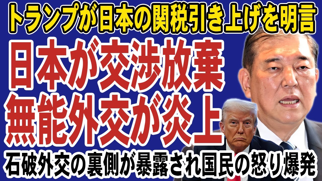 【完全終了】石破政権がアメリカとの関税交渉を放棄!赤澤大臣のアポ無し訪問や交渉カードゼロの土下座外交の発覚に国民はブチギレ。追加関税により日本経済は崩壊へ…