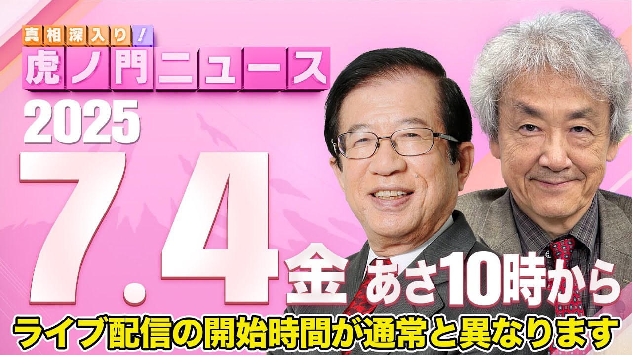 [音楽] [音楽] 皆様おはようございます。7月4日金曜日 の虎のモンニュースです。司会はあ達也 です。どうぞよろしくお願いいたします。 それではゲストのお二方ご紹介していき ましょう。 さて、まずは科学者で工学拍手の武田国彦さんです。よろしくお願いいたします。 よろしくお願いします。 さあ、そして今日は生でのご出演となります。国際政治アナリストの伊藤さんです。よろしくお願いいたします。 よろしくお願いします。 ほで今日はあさんも昨日ジャースの はい。