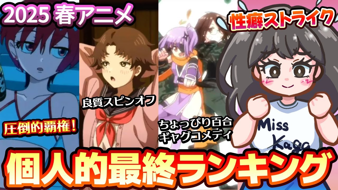 2025 年春アニメの個人的最終ランキングでした。 皆様の今期1 番の作品は何ですか?よかったらコメントで教えてくださいね。 それでは皆様 ご視聴ありがとうございました。 [音楽] ご視聴ありがとうございました。 [音楽]