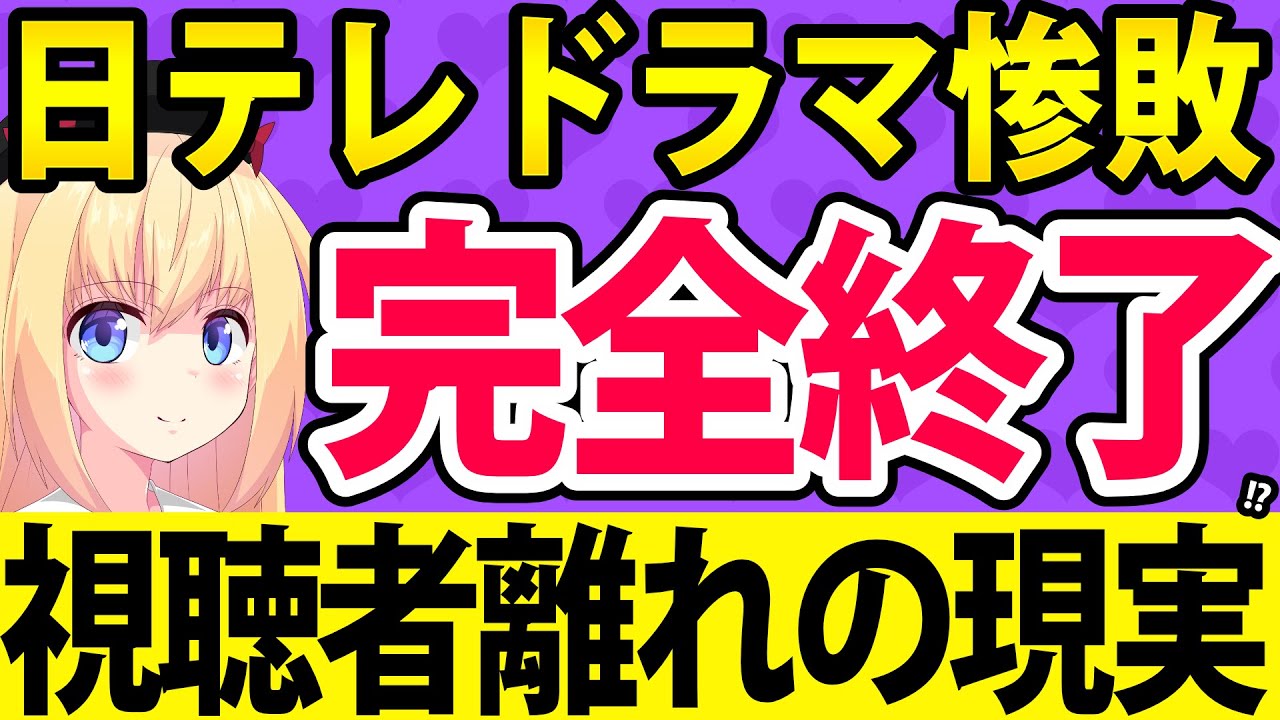 無事テレビの影に隠れてニッテレの 2025年春ドラマがひっそりと全部爆死 。目先の視聴率のために悪がきを続けた ニッテレのマロをパウラが憶測でポイポイ 解説します。ということでニッテレが ドラマで悪きをしまくって爆死している 模様を話題としてまとめたので前半では パウラチャンネルがまとめた話題をご紹介 しつつ後半ではニテレが目先の視聴率優先 で悪きをしまくった結果ますますニテレ から視聴者が離れているその状況について ポイポイ解説したいと思います。それでは パウラチャンネルがまとめた話題から見て いきましょう。2025年4月から放送さ れた民法の春ドラマはTBSのキャスター を含めてヒット作と言えるレベルのドラマ は現れなかった模様。そんな中でもTBS 連れ朝フジテレビは1本ずつはそれなりの 視聴率が取れた中全てのドラマが爆死と 言えるような状態になってしまったのが 日れだった。まずTBSで人気だった ドラマは先ほども触れたキャスター。この ドラマはテレビ局を舞台にテレビマたちが 報道機関として奮闘するフィクションを 描いたドラマだったが、全体的に内容が あまり面白くなかったということに加え、 準主役として抜擢された長野メイの スキャンダルが報じられたことによって、 そのスキャンダルの方が刺激的だったこと もあり、ドラマが埋もれてしまった。それ でも日曜劇場で主役が安倍だったことも あってか、初回放送では世帯視聴率 14.2%を記録するなどした。続いて フジテレビでは看板枠の月ドラマにて続々 最後から2番目の恋というオリジナル ドラマを放送し、世帯視聴率は最大で 9.4%を獲得。パウラチャンネルでも 度々紹介している通り、フジテレビの月枠 といえば世帯視聴率でまるまる2年間1桁 しか取れないという爆死状態が続いている ものの。その中で言うと続々最後から2番 目の恋の世帯視聴率9.4%は2桁にこそ 届いていないもののこの2年間の月ドラマ の中では高水準の世帯視聴率だった。また テレビ朝日は特走ファイナルシーズンにて 世帯視聴率が最大で9.1%を獲得した。 このようにテレビ各曲がテレビオリジナル ドラマで上位を競合う中でこの上位争いに 食い込むどころか全てのドラマでビリ争い をしていたのがニッテレのドラマだったと いうのも2025年4月期において ニッテレで放送された主なドラマは水曜 ドラマの恋は闇土曜ドラマなんで私が神 説教日曜ドラマダメマネダメなタレント マネジメントしますなどがあった。しかし これらのドラマはいずれもほとんどが世帯 視聴率で4%から5%程度しか取れない レベル。その中でまだ増しだったのが土曜 夜9時の時間帯で放送されたなんで私が神 説教で第6話にて世界率6.4%を獲得し たのが最高視聴率だった模様。しかしそれ にはかけてひどい結果を出してしまったの がダメマネと恋は闇の2つのドラマで日曜 夜10時30分から放送のダメマネは初回 の世帯視聴率が4.2%を記録し水曜夜 10時から放送の恋は闇の初回の世帯視聴 率は4.5%を記録。さらに個人視聴率に 至っては2%台を記録している模様で ニッテレが最重用紙している視聴率に至っ てはネット記事などで公表すらされてい ない。しかもこの2つのドラマは全ての 和数の視聴率がなぜか公開されておらず 初回や最終回を覗いたほとんどの視聴率が 謎に包まれてしまっている。特に恋は闇に ついては今期ゴールデンプライム隊ドラマ で最低視聴率を記録し、ネット記事など から今気ワーストや視聴率で残敗などと その悲惨な結果をダメ出しされる事態に TBSテレ朝フジテレビなどがなんとか 世帯視聴率だけでも争い続ける中で日テレ だけは唯一4月の時点でビリ争いを続ける 結果となってしまった。以上パウラ チャンネルがまとめた話題のご紹介でした 。それでは話題を紹介したので後半では ニテレが目先の視聴率優先で悪きをし まくった結果ますニッテレから視聴者が 離れているその参情について解説しますね 。パウラチャンネルのMODといえば令和 のテレビの楽しみ方は番組じゃなくて テレビ局の魚さおっぷりを見て楽しむもの ですがニッテレは今目先の視聴率に こだわって魚さをしまくった結果その悪き のせいでますます事態を悪化させていると いう悪循環に陥る非常にウォッチ視界の ある状況です。特に先ほど紹介した後期 ワースと視聴率で残敗の楽を押されて しまったという水曜十字の恋は闇のドラマ はまさにその悪きのせいで視聴率が爆死 する結果になった象徴みたいなものだっ たりします。というのもニッテレはコア 視聴率絶対主義7名の元に1度そのドラマ 枠を廃止してそしてまるまる1年間爆死し まくった結果1年後にまた水曜夜10時の 時間帯にドラマ枠を復活させてスタートさ せたという経緯があります。ニッテレは今 から1年前の2024年4月水曜日夜10 時のドラマ枠を廃止。ニッテレは水曜日夜 10時のドラマを38年以上にも渡って 続けていたのですがそれを突然打ち切って 代わりに土曜日夜10時のドラマ枠を新設 したわけです