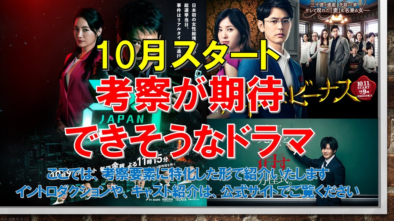 【危険なビーナス】【24 JAPAN】【先生を消す方程式】10月スタート 考察が期待できそうなドラマと題して、10月から新たに始まる新ドラマの中から、考察が期待できそうなドラマ、【危険なビーナス】【24 JAPAN】【先生を消す方程式】について、いくつか紹介したいと思います。なお、イントロダクションや、キャスト紹介は、公式サイトを見ればわかることなので、ここでは、考察要素に特化した形で紹介いたします。