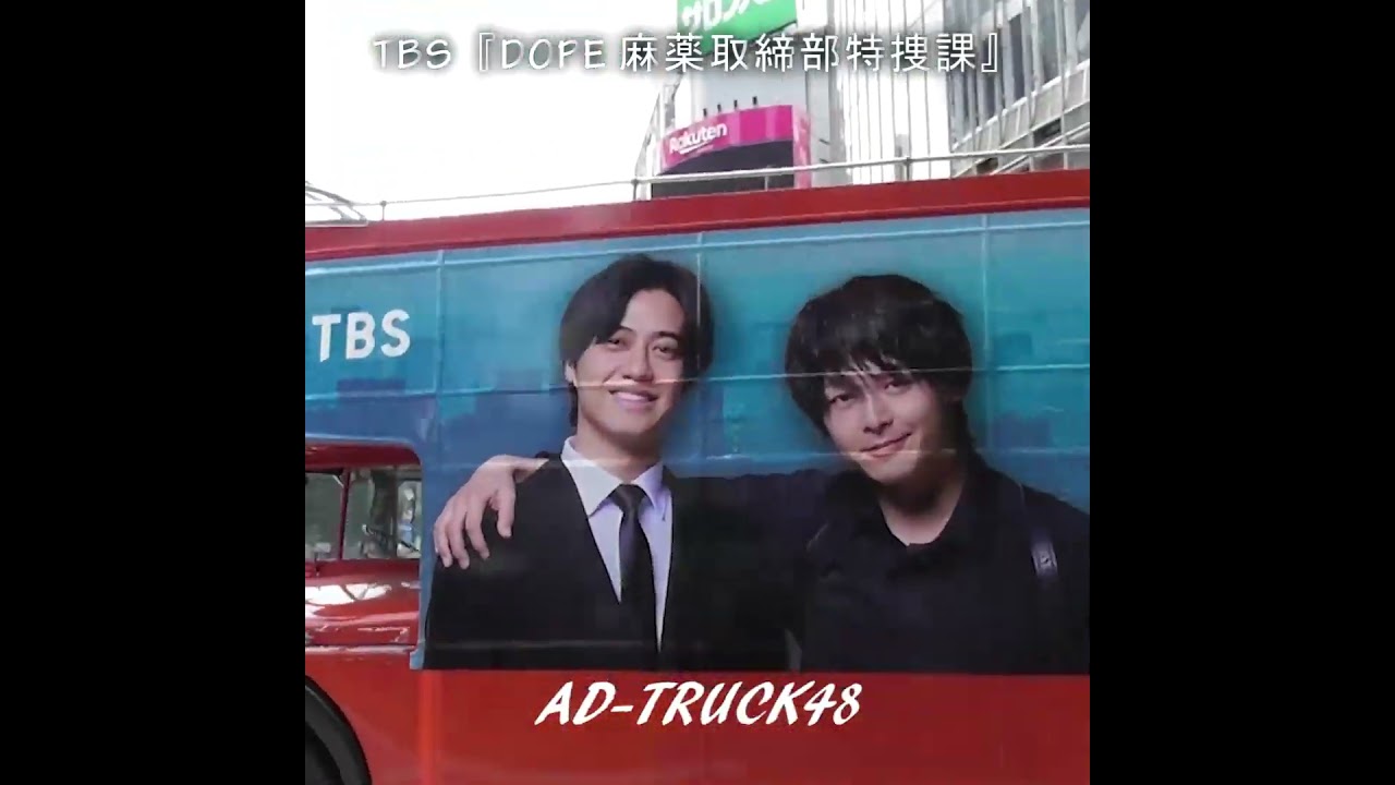 髙橋海人×中村倫也 W主演 TBSドラマ『DOPE 麻薬取締部特捜課』をラッピングしたロンドンバス #ドラマDOPE #髙橋海人 #中村倫也 #TBS DOPE 麻薬取締部特捜課TBSドラマDOPE中村倫也広告トラック髙橋海人