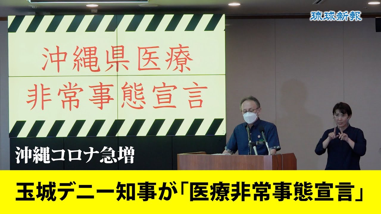 沖縄県新型コロナウイルス感染症対策本部会議が21日開かれ、22日~8月14日までの間の対処方針を決定した。「急激な感染拡大を抑え込み、県民の命を守るための緊急対策」と位置付け、県全域でイベント開催時の対策強化や、会食時の人数、時間制限などを県民に求めた。玉城デニー知事は同日夕の記者会見で、感染の急拡大によって医療ひっ迫が深刻化しているとして「医療非常事態宣言」を発出し、協力を求めた。