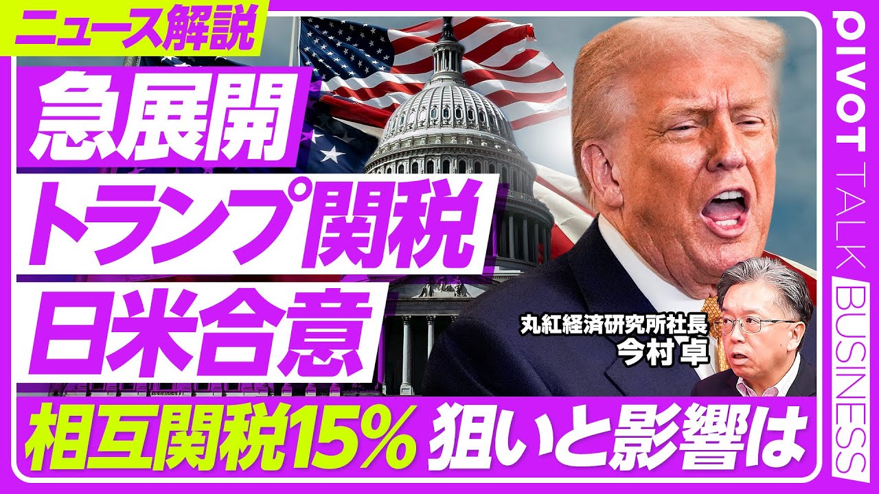 【緊急解説】トランプ関税、日米合意の衝撃/なぜこのタイミングで/コメと車の市場開放で日本への影響は/年後半からは米インフレ圧力/日経平均1500円高/アメリカの景気は【PIVOT TALK】