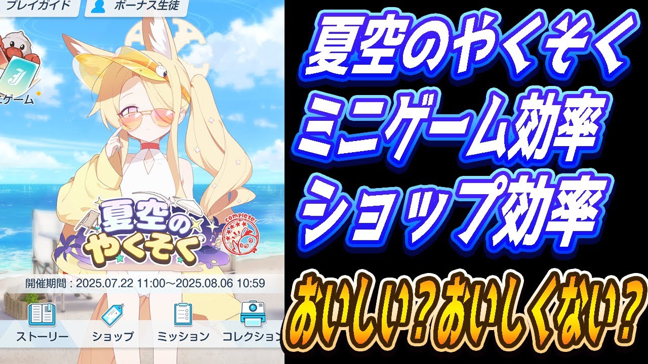 【ブルアカ】「夏空のやくそく」ミニゲームの効率やショップ効率【ブルーアーカイブ】