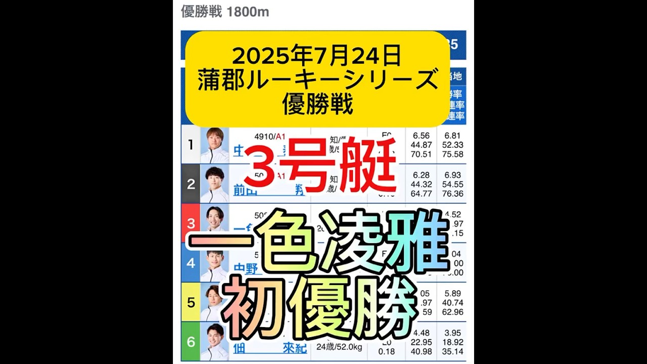2025年7月24日 ルーキーシリーズ蒲郡優勝戦 #おすすめ #ボートレース#ルーキー#一色凌雅#万舟
