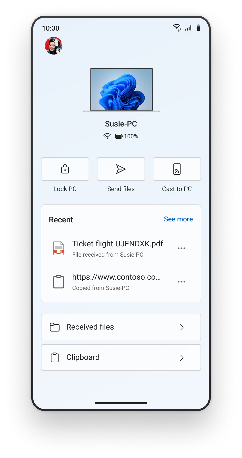 PCから最近受け取ったファイルやクリップボードの内容に即座にアクセス可能に
