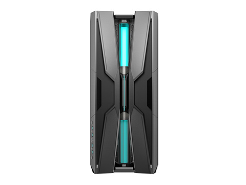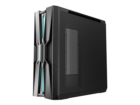 「ゲノムをモチーフにした未来感あふれるデザイン」(アユート)。遺伝子構造にインスパイアされた独創的なデザインという。フロントパネルにはマザーボード同期対応のRGBライティングが装備されている。