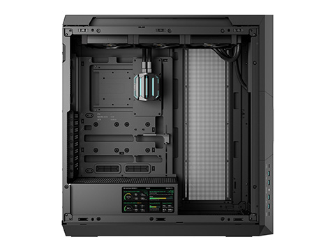 水冷一体型CPUクーラーを備えたフルタワーケース、背面コネクタ設計のマザーボードに対応