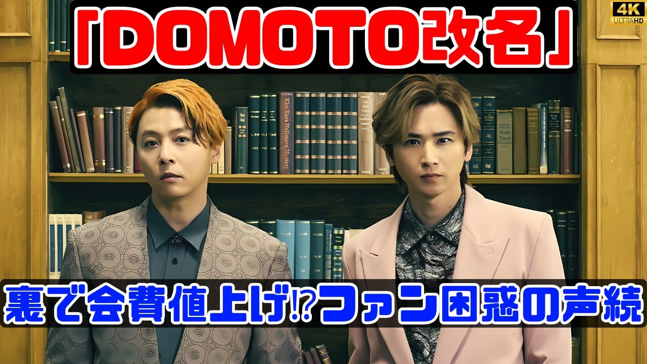 KinKi Kidsが「DOMOTO」への改名を発表し話題沸騰!しかし、同時にファンクラブ会費の値上げが発表され、ファンの間で「二重取りでは?」との声が続出しています。長年応援してきたファンの思い、そしてこの“変化”に込められた意味とは?SNSのリアルな反応と共に、詳細を徹底解説します。
