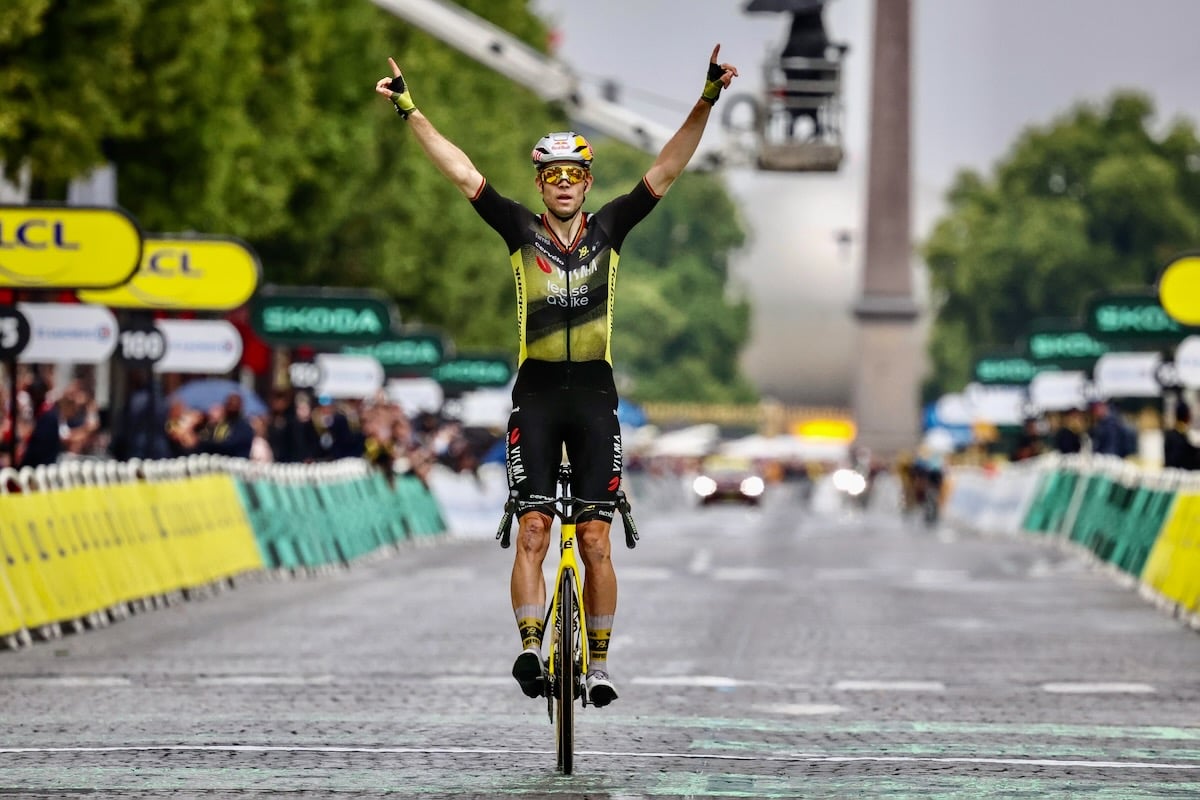 6.4kmの独走決め、ツール最終日を制したワウト・ファンアールト(ベルギー、ヴィスマ・リースアバイク) photo:CorVos