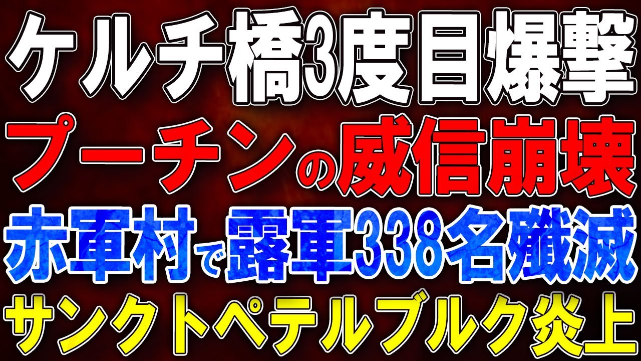 【ウクライナ戦況】ケルチ橋3度目爆撃!プーチンの威信完全崩壊!赤軍村で露軍338名殲滅!ンクトペテルブルク炎上!