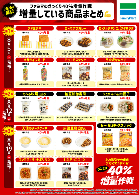 ファミリーマートは、キャンペーン「ざっくり40%増量作戦」を本日8月5日より順次開始する。