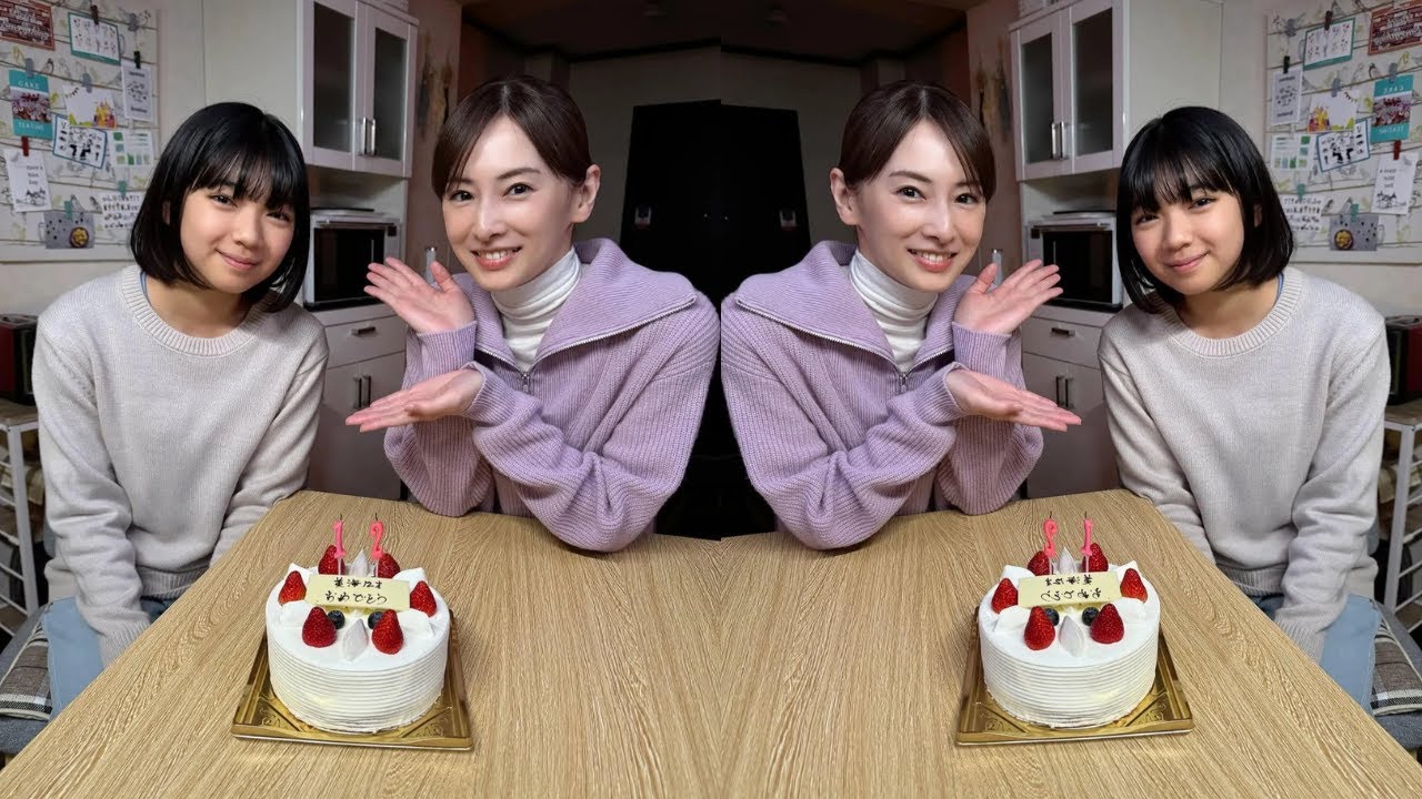 誕生日ケーキを前に笑顔の2ショット:紘海が毎年欠かさず美海の誕生日を祝っていた思い出のシーンを彷彿とさせる写真110。