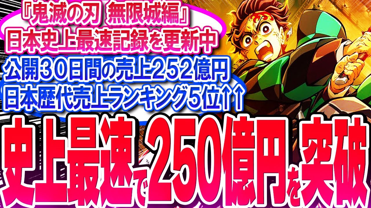 鬼滅映画が公開30日間で売上252億円!! 日本歴代売上ランキング5位↑【反応集】【興行収入】【竈門炭治郎】【猗窩座】【煉獄杏寿郎】【胡蝶しのぶ】【童磨】【冨岡義勇】【無限列車】【総集編】